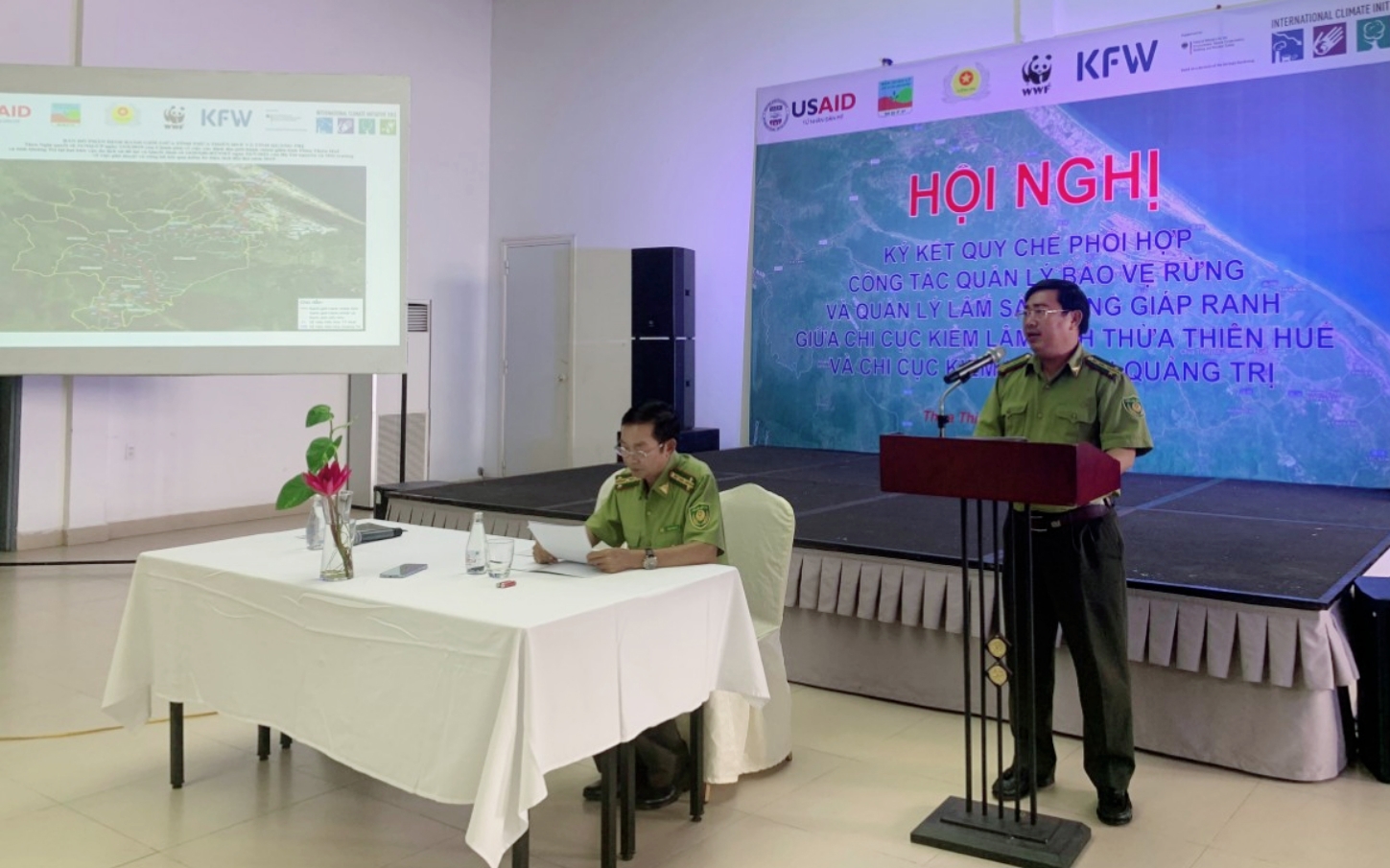 HỘI NGHỊ KÝ KẾT QUY CHẾ PHỐI HỢP CÔNG TÁC QUẢN LÝ BẢO VỆ RỪNG VÀ QUẢN LÝ LÂM SẢN VÙNG GIÁP RANH GIỮA CHI CỤC KIỂM LÂM THỪA THIÊN HUẾ VÀ CHI CỤC KIỂM LÂM TỈNH QUẢNG TRỊ