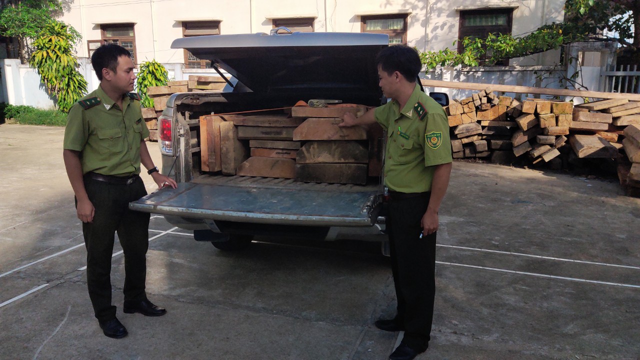 LỰC LƯỢNG KIỂM LÂM VỪA PHÁT HIỆN, TRUY BẮT 2 VỤ VẬN CHUYỂN GỖ LẬU BẰNG XE Ô TÔ GẮN BIỂN SỐ GIẢ