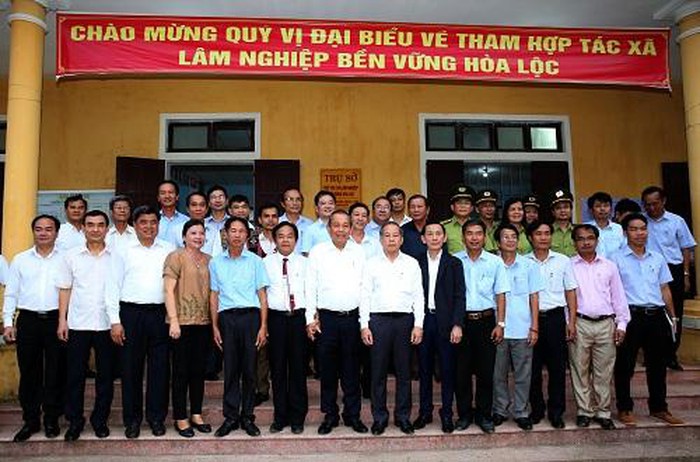 Đồng chí Trương Hòa Bình - UV Bộ Chính trị, Phó Thủ tướng đến thăm và làm việc tại Hợp tác xã Lâm nghiệp bền vững Hòa Lộc, huyện Phú Lộc, tỉnh Thừa Thiên Huế