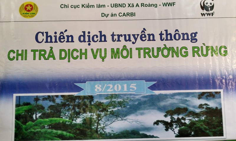 Với mục đích truyền thông nâng cao nhận thức cho cộng đồng địa phương, đưa thông tin về cơ sở, trong 2 ngày 25 và 26/8/2015, Chi cục Kiểm lâm Thừa Thiên Huế đã phối hợp với Ủy ban nhân dân xã A Roàng thực hiện chiến dịch truyền thông về “Chính sách chi trả dịch vụ môi trường rừng”, hoạt động này được hỗ trợ bởi tổ chức WWF Việt Nam trong khuôn khổ Dự án CARBI.