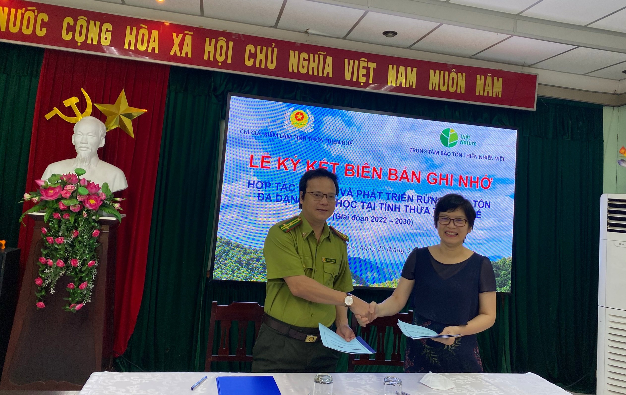 CHI CỤC KIỂM LÂM TỈNH THỪA THIÊN HUẾ PHỐI HỢP VỚI TRUNG TÂM BẢO TỒN THIÊN NHIÊN VIỆT KÝ KẾT BIÊN BẢN GHI NHỚ VỀ HỢP TÁC BẢO VỆ VÀ PHÁT TRIỂN RỪNG, BẢO TỒN ĐA DẠNG SINH HỌC TẠI TỈNH THỪA THIÊN HUẾ