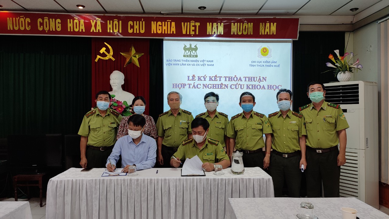CHI CỤC KIỂM LÂM PHỐI HỢP VỚI BẢO TÀNG THIÊN NHIÊN VIỆT NAM - VIỆN HÀN LÂM KHOA HỌC VÀ CÔNG NGHỆ VIỆT NAM TỔ CHỨC LỄ KÝ KẾT HỢP TÁC NGHIÊN CỨU KHOA HỌC
