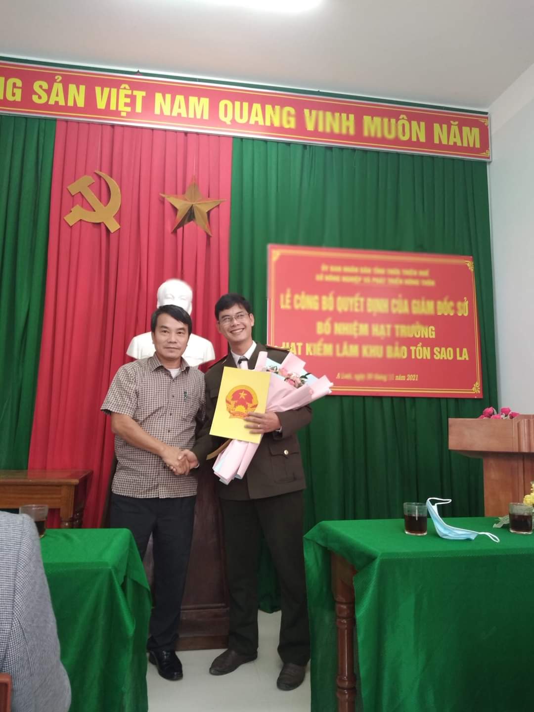 CÔNG BỐ QUYẾT ĐỊNH CỦA GIÁM ĐỐC SỞ NÔNG NGHIỆP VÀ PTNT VỀ VIỆC BỔ NHIỆM HẠT TRƯỞNG HẠT KIỂM LÂM KHU BẢO TỒN SAO LA