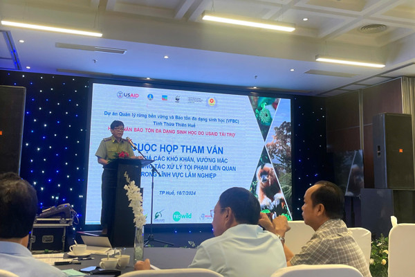 Sáng ngày 18/7/2024, nhằm tháo gỡ những khó khăn, vướng mắc trong công tác xử lý tội phạm trong lĩnh vực lâm nghiệp trên địa bàn tỉnh Thừa Thiên Huế, Ban quản lý Dự án Quản lý rừng bền vững và Bảo tồn Đa dạng sinh học tỉnh (VFBC) phối hợp với đơn vị thực hiện hợp phần Đa dạng sinh học (WWF-Việt Nam) tổ chức Hội nghị “Đánh giá những khó khăn, vướng mắc trong công tác xử lý tội phạm trong lĩnh vực lâm nghiệp”.