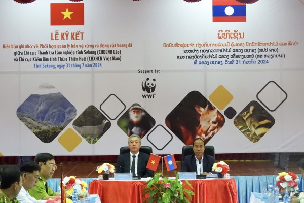Sáng nay 31/7/2024, tại tỉnh Sê Kông, nước CHDCND Lào, Hội nghị ký kết biên bản ghi nhớ giữa Chi cục Kiểm lâm - Sở Nông nghiệp và Phát triển nông thôn tỉnh Thừa Thiên Huế, nước Cộng hòa Xã hội Chủ nghĩa Việt Nam và Chi cục Thanh tra Lâm nghiệp - Sở Nông Lâm nghiệp tỉnh Sê Kông, nước Cộng hòa Dân chủ Nhân dân Lào đã diễn ra trang trọng. Đây là dịp để hai tỉnh cùng nhau trao đổi và đi đến thống nhất cụ thể trong hợp tác, tạo thuận lợi cho trong lĩnh vực quản lý, bảo vệ rừng, bảo tồn tài nguyên thiên nhiên và quản lý lâm sản ở tuyến biên giới Việt Nam - Lào giai đoạn 2024 - 2026.