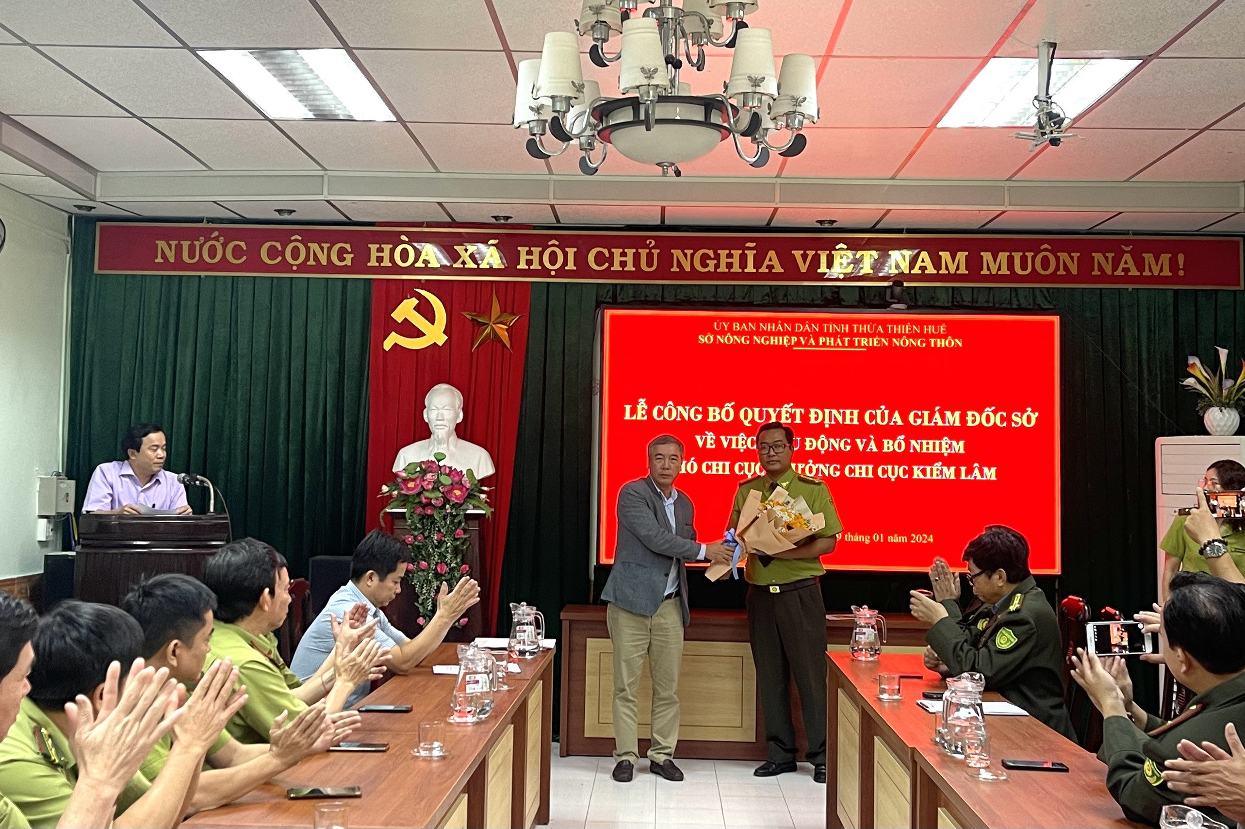 Sáng ngày 19/01/2021, Sở Nông nghiệp và PTNT tổ chức Hội nghị công bố Quyết định điều động, bổ nhiệm Phó Chi cục trưởng Chi cục Kiểm lâm; Theo đó ông Đinh Công Bình - Hạt trưởng Hạt Kiểm lâm thị xã Hương Trà được điều động và bổ nhiệm Phó Chi cục trưởng Chi cục Kiểm lâm, thời gian bổ nhiệm từ ngày 19/01/2024 - 18/01/2029.