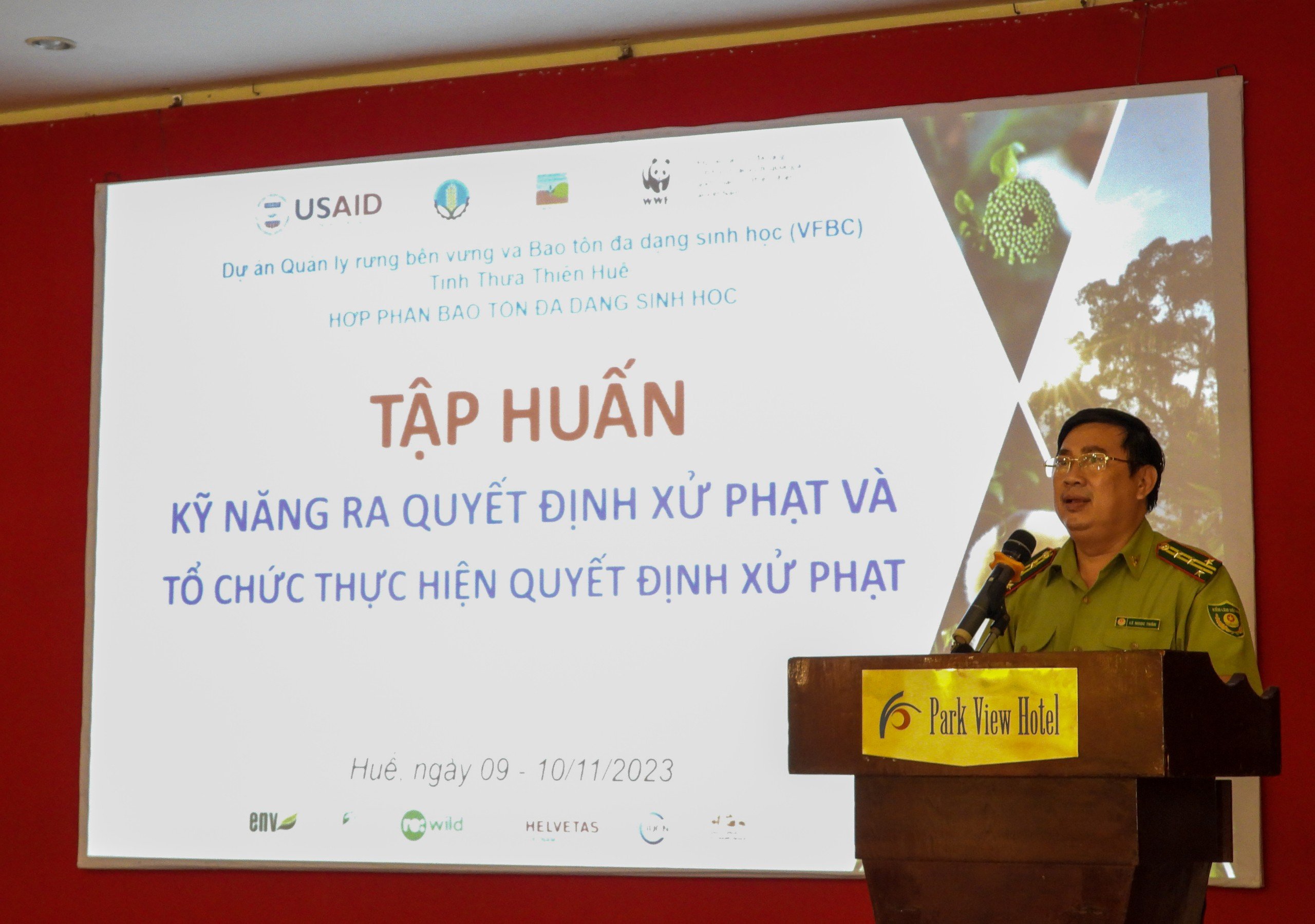 Trong 2 ngày 09 và 10/11/2023, Chi cục Kiểm lâm phối hợp với Ban quản lý dự án hỗ trợ kỹ thuật quản lý rừng bền vững và bảo tồn đa dạng sinh học (VFBC) tỉnh Thừa Thiên Huế tổ chức tập huấn về “Kỹ năng ban hành quyết định xử phạt và tổ chức thực hiện quyết định xử phạt cho lực lượng Kiểm lâm”.