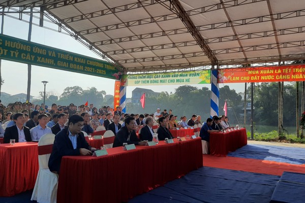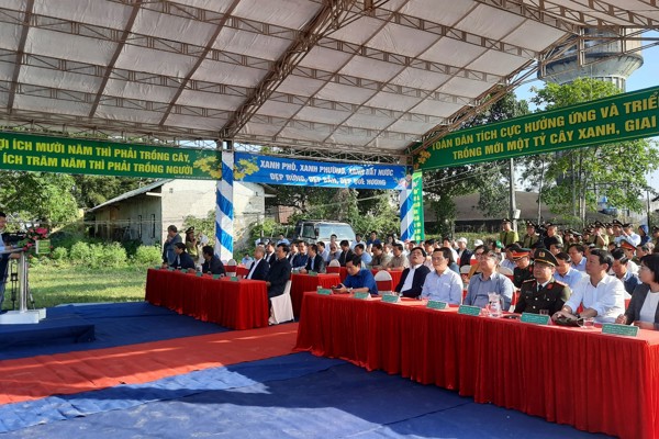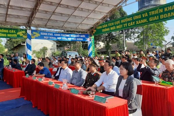 Phát biểu tại buổi Lễ phát động, đồng chí Hoàng Hải Minh, Phó Chủ tịch UBND tỉnh đã nhấn mạnh: Trong năm 2023, diện tích rừng tiếp tục được quản lý bảo vệ tốt, ổn định độ che phủ rừng của tỉnh 57,16 %; toàn tỉnh đã trồng hơn 6.300 ha rừng (tăng 7,6% so với năm 2022), trong đó trồng mới hơn 1,8 triệu cây xanh, đạt hơn 128% so với kế hoạch đề ra. gieo ươm hơn 20 triệu cây giống phục vụ cho hoạt động trồng rừng. Đến nay toàn tỉnh đã có hơn 12.400 ha rừng trồng gỗ lớn là các loài Keo và bản địa, có hơn 11.920 ha rừng được cấp chứng chỉ quản lý rừng bền vững, trong đó có khoảng 942 ha rừng tự nhiên…