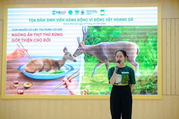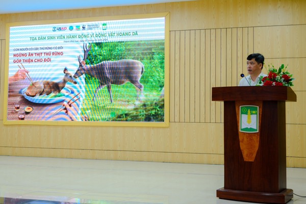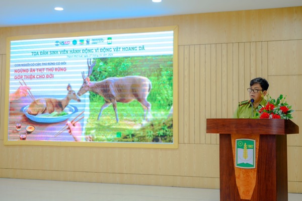 Nhằm nâng cao nhận thức và hiểu biết cho các bạn Sinh viên về đa dạng sinh học và động vật hoang dã, đồng thời phát huy vai trò của sinh viên trong việc cắt đứt chuỗi tiêu thụ thịt động vật hoang dã, góp phần bảo tồn đa dạng sinh học tại Thừa Thiên Huế nói riêng và Việt Nam nói chung; ngày 7/4/2024, Chi cục Kiểm lâm, Ban quản lý dự án VFBC tỉnh, Tổ chức WWF-Việt Nam và Trường Đại học Nông Lâm phối hợp tổ chức buổi Tọa đàm sinh viên hành động vì động vật hoang dã.